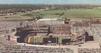 Das Metropolitan Stadium wurde 1956 auf einer Farm für die American Association ![]() 1961, als die Washington Senator nach Minneapolis zogen und in die Minnesota Twins umbenannt wurden, bekam das Stadion eine zusätzliche Tribünen entlang der Outfields. Dazu wurden die beiden unteren Decks der Haupttribüne ausgebaut. Nachdem dann auch die Minnesota Vikings im "Old Met" spielten, wurde 1965 die Tribüne im Left Field durch eine neue Doppelstöckige Tribüne ersetzt. Leider