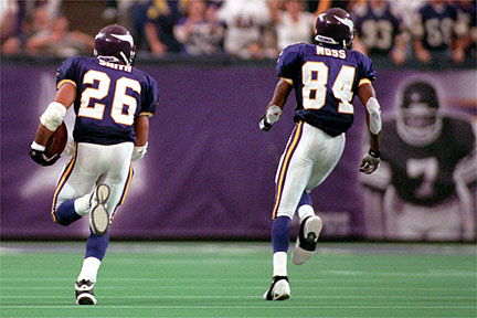 Smith konnte für seinen 59 Yard durchbrechen und wird von Randy Moss