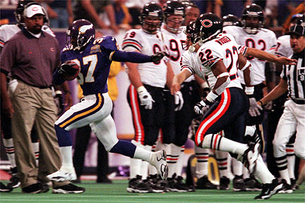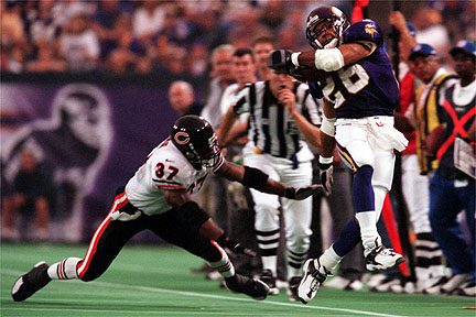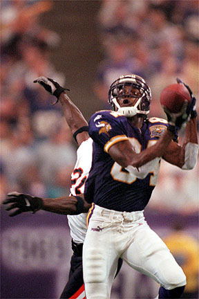Moss konte Bears Cornerback Thomas Smith entkommen und nimmt Daunte Culpeppers