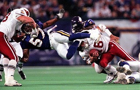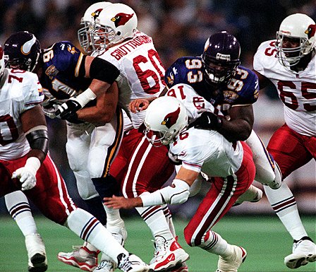 Randle (93) tackled Arizonas Quarterback Jake Plummer.
