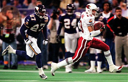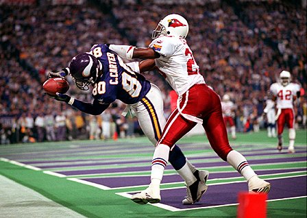 Carter kann den Ball in der Endzone vor Arizonas Corey Chavous zum Touchdown