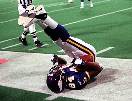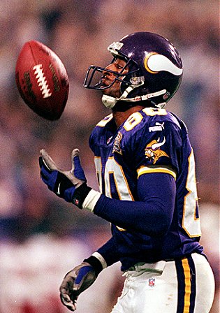 Catch im 4. Quarter spielt Cris Carter mit dem Ball.