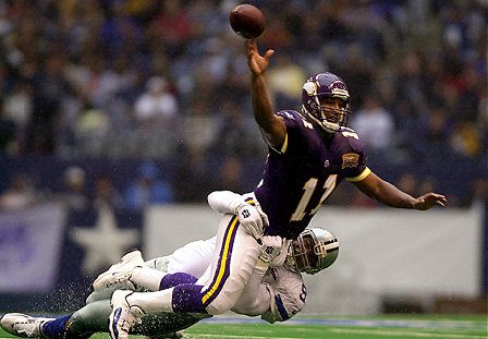 Culpepper witd im 2. Quarter von Ex-Vikings Dimitrius Underwood gesackt.