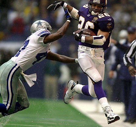 Back Robert Smith wird von Cowboys Verteidiger Ryan McNeil über die
