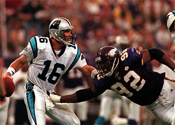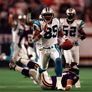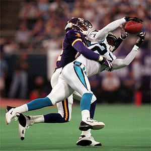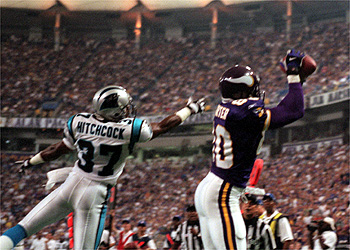 3. Quarter fängt Cris Carter vor Panthers Cornerback Jimmy Hitchcock