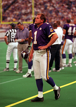 einen Touchdownpaß und bringt die Vikings mit 13:10 in Führung.