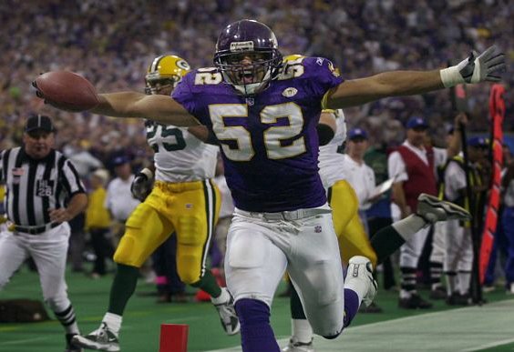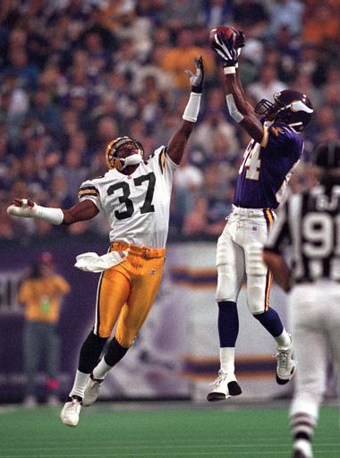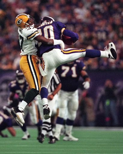 Carter kann einen 17 Yard Paß von Daunte Culpepper unter Kontrolle