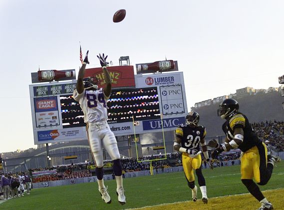 Moss Touchdown im 4. Quarter bringt die Vikings noch einmal heran.