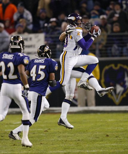 Carter fängt einen Paß von Randy Moss im 1. Quarter