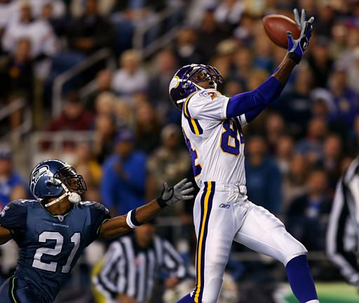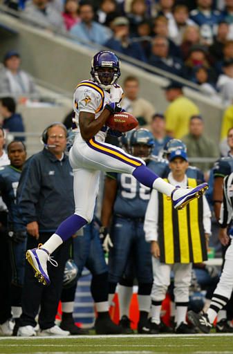 Moss kann einen Paß von Culpepper in der 1. Halbzeit unter Kontrolle