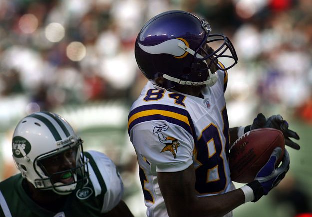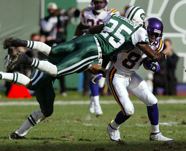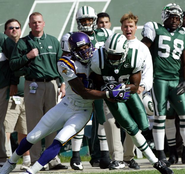 Paß von Daunte Culpepper auf Randy Moss wird im 1. Quarter von Jets
