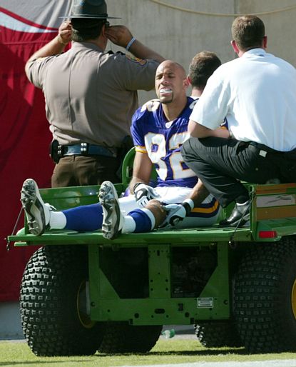 Wide Receiver Derrick Alexander wird nach seiner Knieverletzung vom Feld