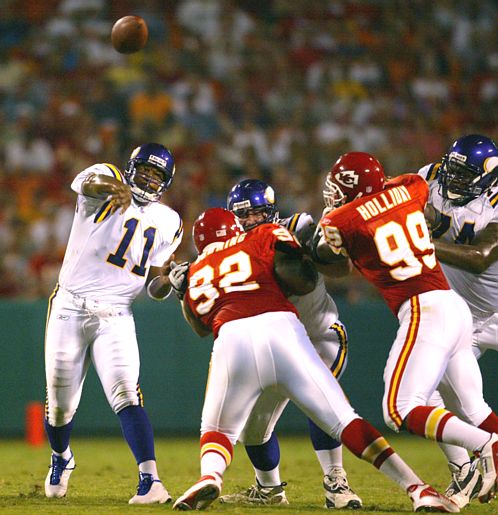 Daunte Culpepper kann mit 8 von 13 Pässen 68 Yards erwerfen.