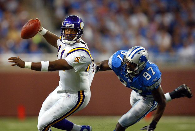Culpepper wird von Boss Bailey im 1. Quarter gejagt.