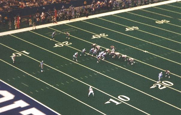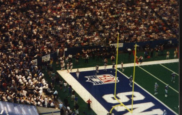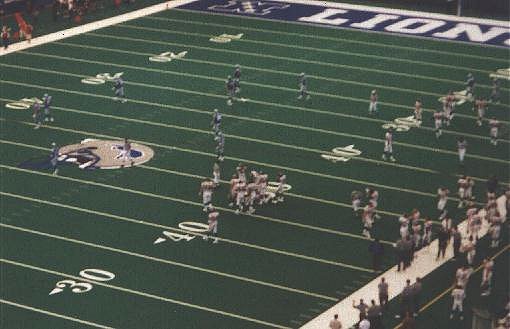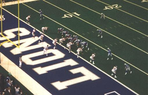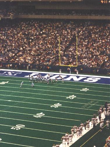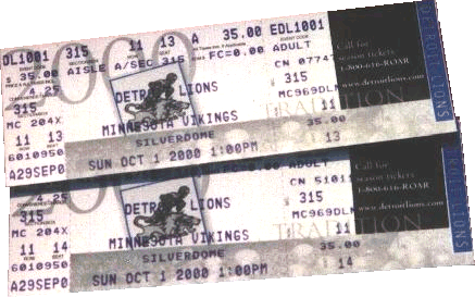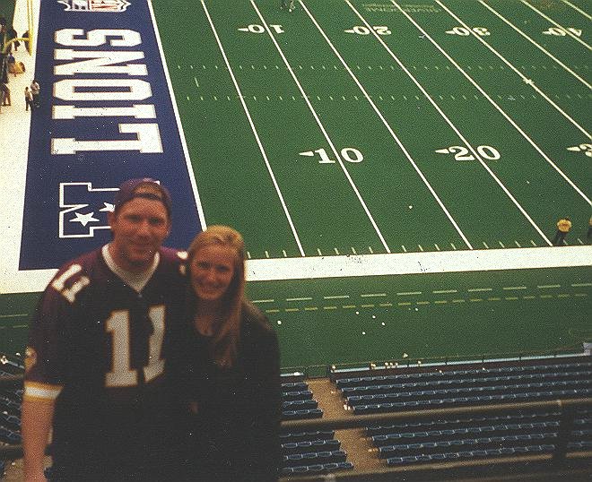 Da mich die meisten, die diese Seite regelmäßig besuchen, höchstwahrscheinlich gar nicht oder nur von diversen Postings am Purple Forum her kennen, möchte ich mich zu Anfang meines Berichtes kurz vorstellen: Ich heisse Johannes, werde in Kürze 25 Jahre alt, wohne in München und studiere dort seit Oktober 1998 Staats- und Sozialwissenschaften. Footballfan bin ich noch nicht allzulange, genauer gesagt, fällt der Beginn meiner Football-Leidenschaft ziemlich genau mit dem Anfang meines Studiums zusammen. Ich saß eines Abends gelangweilt in meiner Bude und zappte so durch die Programme, als ich im DSF auf die Übertragung eines Footballspieles stieß. Ich hatte zwar von vorher schon von Football gehört und sogar mal einen Superbowl gesehen (XXVIII, die letzte der 4 Niederlagen der Bills), aber zu einer "festen" Bindung zu dem Sport kam es nie. Da ich aber an jenem Abend nichts anderes zu tun hatte, schaute ich mir dieses Spiel einfach mal an. Ich war schon nach einigen wenigen Minuten hellauf begeistert, auch wenn ich die Regeln damals nicht einmal annähernd verstanden habe : Besonders beeindruckt hatten mich in diesem Spiel zwei Akteure: Zuerst einmal dieser Kerl mit der #7, der das komische Ei mit einer unheimlichen Geschwindigkeit und Genauigkeit über das Feld schleuderte. Ich hatte keine Ahnung, wie er dem Football diesen 'Spin' verpasste, und beschloß, mir in Kürze auch so ein Ding zuzulegen, um es zu üben. (Nach wochenlanger Übung und mehr als einer schmerzhaften Verrenkung habe ich dies auch schliesslich geschafft lol). Der zweite bemerkenswerte Spieler war der Gegenpart des ersten, er trug die #18: Er fing so ziemlich alle der Pässe, die auf ihn geworfen worden...und WIE! Er schien den Ball wie ein Magnet anzuziehen, es war unglaublich. Als der Reporter auch noch sagte, dieser sei ein Rookie, war ich komplett von den Socken. Der Junge hatte was drauf! Von diesem Spiel an war ich ein Fan dieser Mannschaft und dieser zwei Spieler. Wie Ihr bestimmt schon erraten habt, handelte es sich bei der Mannschaft um die Minnesota Vikings und die zwei Spieler, die es mir angetan hatten, waren QB #7 Randall Cunningham und WR #18 Randy Moss. Von diesem Tag an war ich Football und Vikings-Fan, Punkt. Ich hatte zwar keine Ahnung von der NFL, aber sie hatte einen neuen Bewunderer gewonnen. In den folgenden Wochen und Monaten war ich so ziemlich jeden Sonntag und Montag abends ab 23 Uhr Gast beim DSF, kaufte mir 2 Footballregelbücher und schlussendlich auch einen Football, der inzwischen auch halbwegs so fliegt, wie ich das gerne hätte. Zum Footballspielen selbst hat es leider bisher aus verschiedenen Gründen nicht gereicht, doch die Hoffnung stirbt zuletzt: So, ich denke, das reicht zu meiner Person, nun zum eigentlichen Thema: Vor 2 Wochen wurde für mich ein Traum wahr, meine Freundin und ich waren im Urlaub in den USA, und es gelang mir trotz kurzfristiger Buchung des Fluges noch, über Ticketmaster zwei Karten für das Spiel der Vikings bei den Detroit Lions am 01.10. zu ergattern. Ich machte mir zwar ein paar Sorgen über die Plätze (Upper Level, Corner), jedoch war ich in erster Linie froh, überhaupt noch Karten bekommen zu haben (3 Tage später gabs bei Ticketmaster nämlich NIX mehr). Der Zeitpunkt für diesen