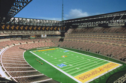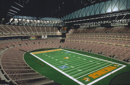 Stadion ist mit geschlossenem Dach für die Vikingsspiele vorbereitet.