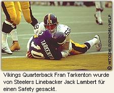 Fran Tarkenton in der Endzone zu Fall zu bringen. Dies war ein Safty und